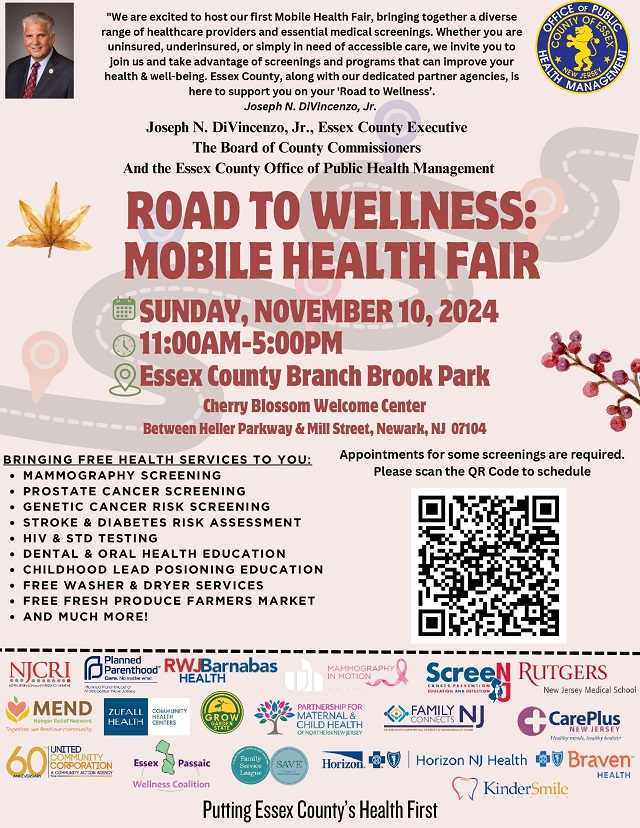 Essex County is excited to announce the Road to Wellness: Mobile Health Fair, a free and inclusive event providing essential healthcare services to all community members. This health fair, hosted in collaboration with local healthcare providers and organizations, is designed to support the health and well-being of our residents.